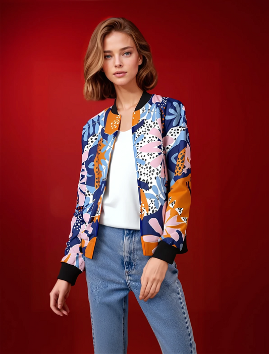 Floral Heart Patterns All Over Printed Bomber Jacket