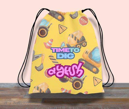 Construction Theme All Over Printed Drawstring Bag | Ideal Birthday Gift & Return Gift