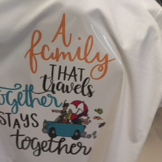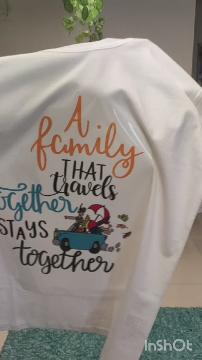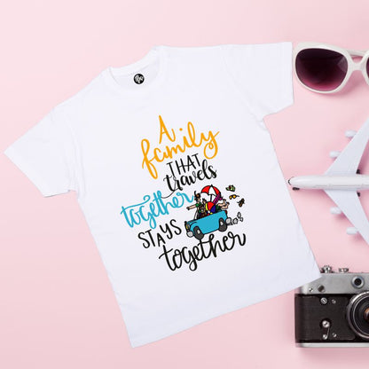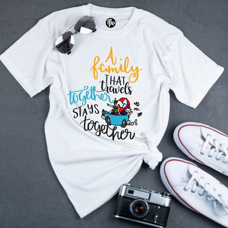 Our "A Family that Travels Together Stays Together" Vacation T-Shirts are made with a soft fabric for maximum comfort. Perfect for the next family holiday, road trip, or family outing, these shirts will make great memories that last forever.