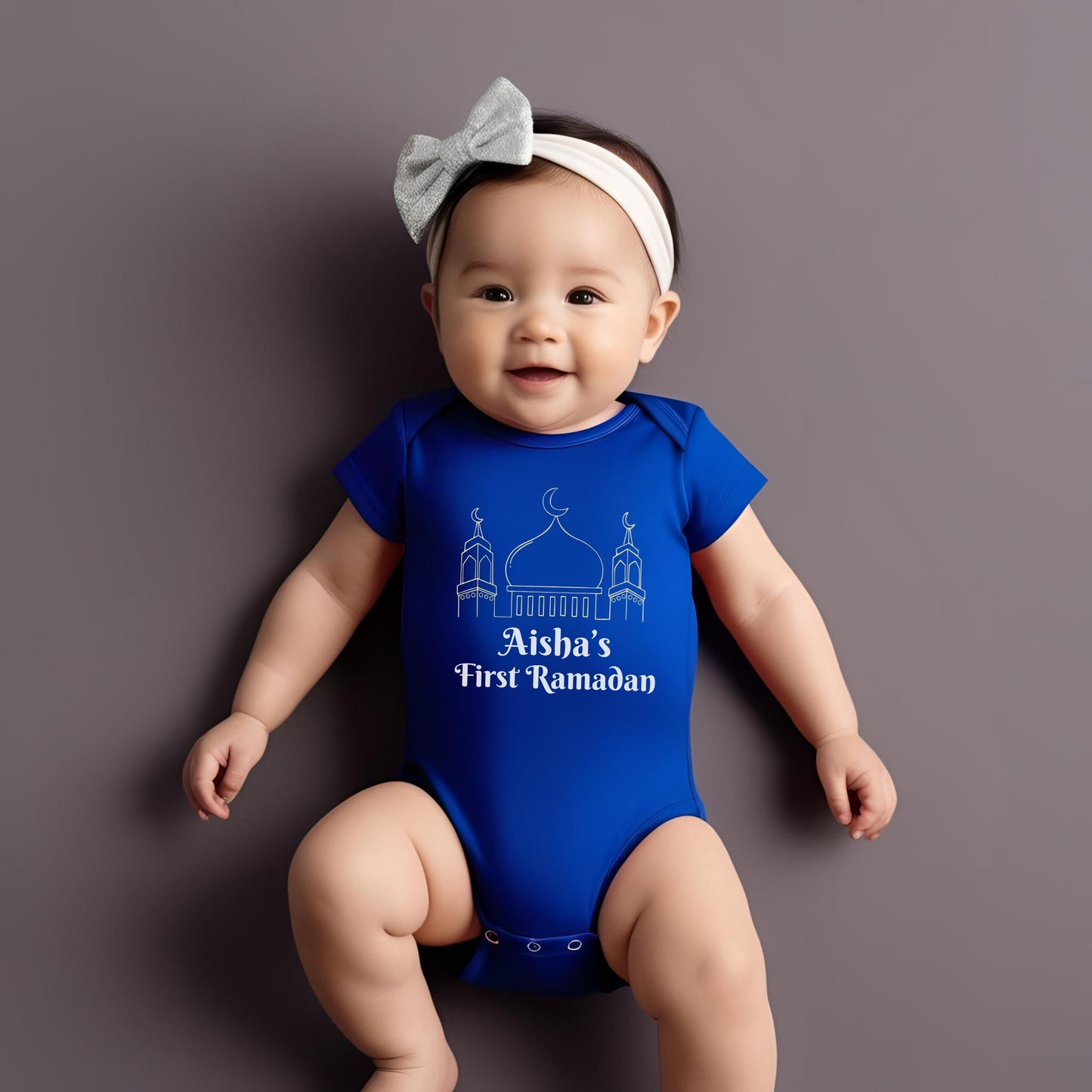 Celebrate your little one's first Ramadan with our Customized First Ramadan Onesie. Made from soft, high-quality fabric, this onesie is perfect for keeping your baby comfortable and stylish during this special time. Customize it with their name for a personal touch. Order now and make memories that will last a lifetime!