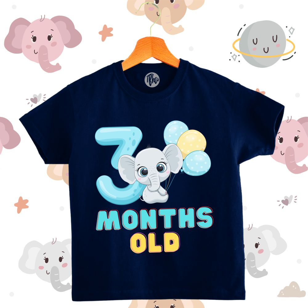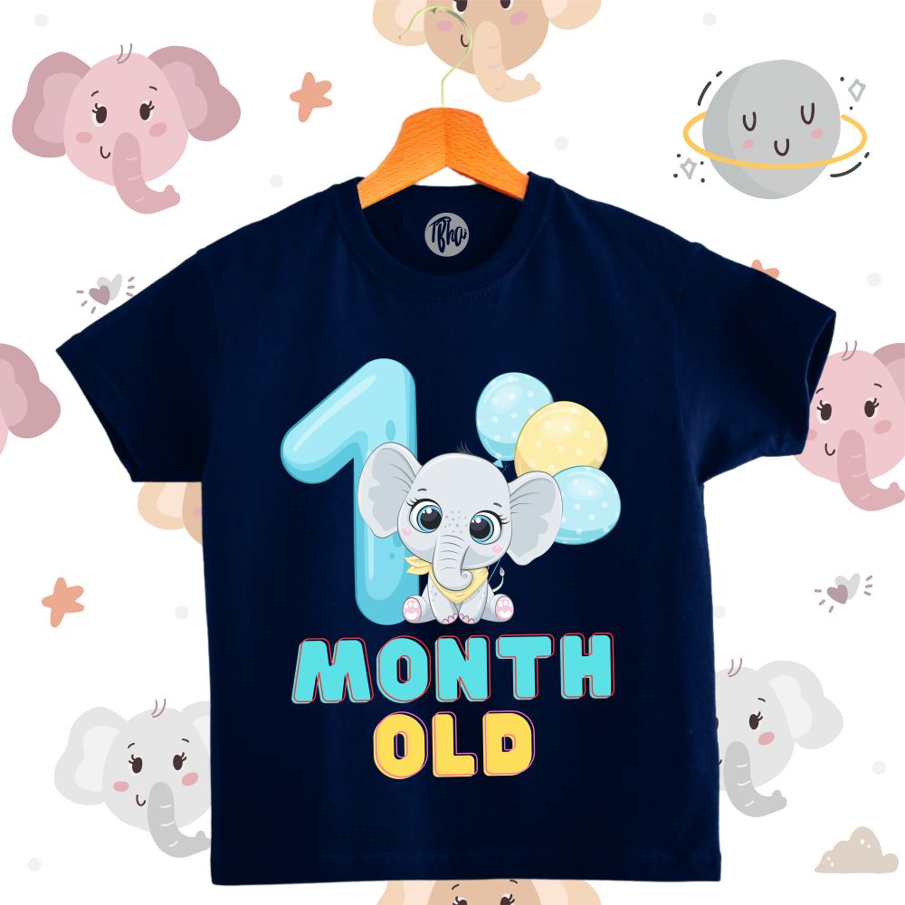 Cute Baby Elephant with Balloons | 0-3 Months Monthly Birthday T-Shirts