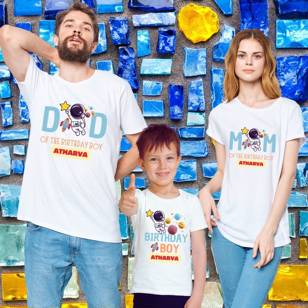 Dad Mom of Birthday Boy Space Theme Birthday T-Shirts for Family