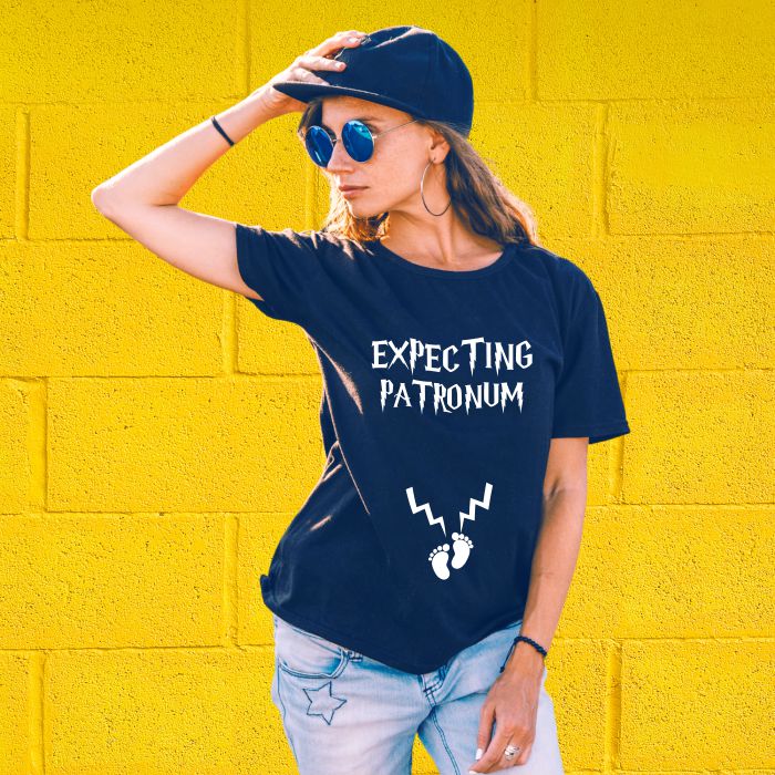 Expect the unexpected with this Expecting Patronum Harry Potter themed pregnancy photoshoot tee! Join the Dark Lord and the Order of the Phoenix and show off your growing baby bump with this magical maternity marque! #expectopatronum #pregnancyphoto #magicalmama