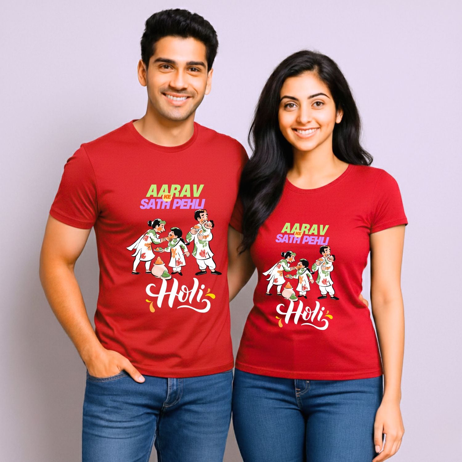 Celebrate your little ones first Holi as a family with our personalized t-shirts! Customize them with your baby's name for a unique and special touch. Feel the joy and togetherness of the festival in these comfortable and stylish shirts. Make your first Holi truly unforgettable with our personalized t-shirts!