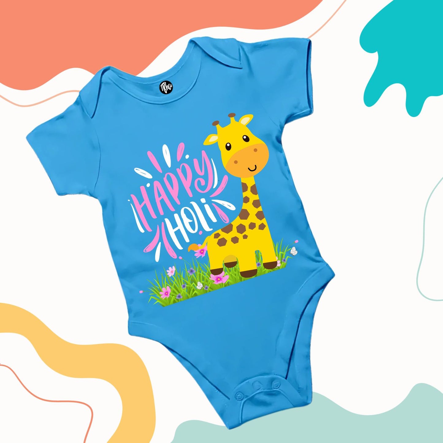 Celebrate the joy of Holi with our Happy Holi Colorful Animal Print Onesie for Babies! Made with playful and vibrant giraffe print, this onesie is perfect for adding some color to your little one's wardrobe. Spread happiness and love with this adorable onesie.