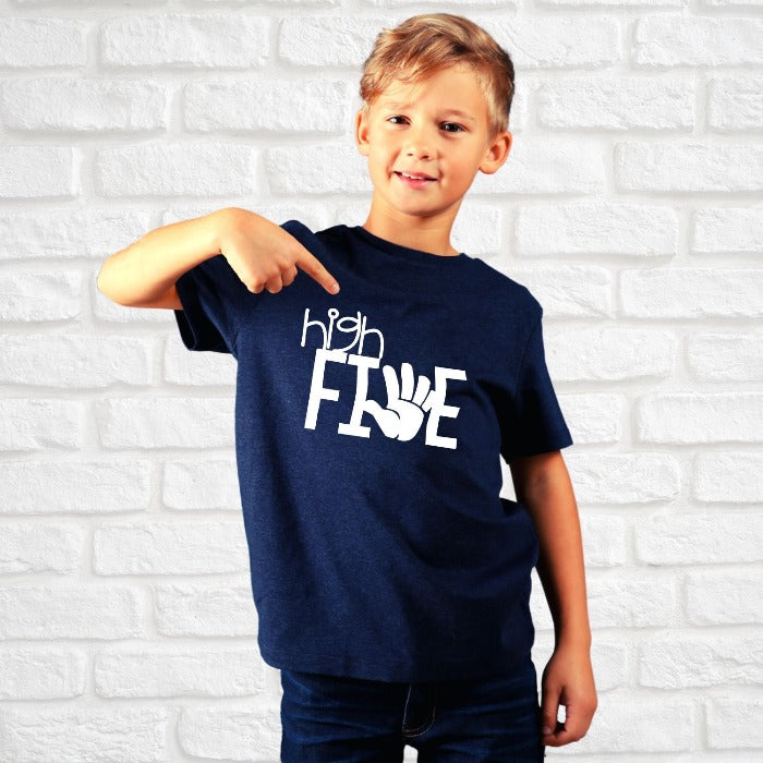 Celebrate your little one's fifth birthday with this awesome High Five Fifth Birthday T-Shirt for Kids! With a fun print that features a hand giving a high five, it's a super stylish way to mark this big milestone. Get ready to celebrate like it's a fiesta!