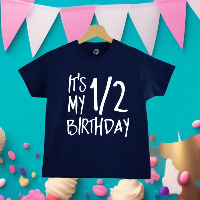 Celebrate your little one's halfway mark with our "It's My Half Birthday" t-shirt! Made with high-quality fabric, this shirt is both comfortable and durable. Perfect for birthday parties or everyday wear, it's a fun and unique way to show off your child's special day. Order now and make their half birthday extra special!