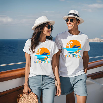Get ready for an unforgettable vacation with our Let's Cruise T-Shirts! These comfortable and stylish shirts are the perfect way to show your love for cruising and make a statement wherever you go. Say goodbye to boring vacation wear and hello to the perfect souvenir.