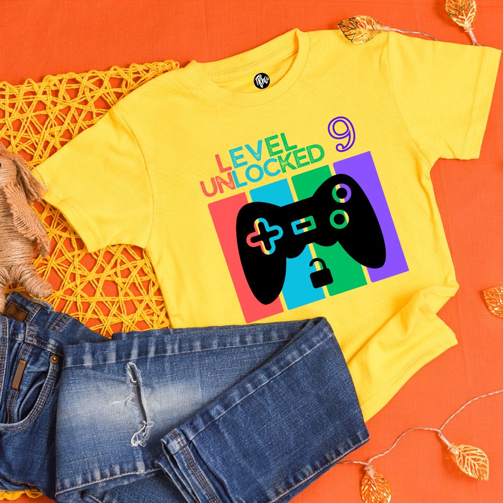 Unleash the gamer in your child as they turn 9 with our "Level 9 Unlocked | 9th Birthday Gaming Theme T-Shirt"! This shirt celebrates their special day with a bold design featuring a video game controller and the words "Level 9 Unlocked". Made with soft and durable fabric, it's the perfect gift for any young gamer.