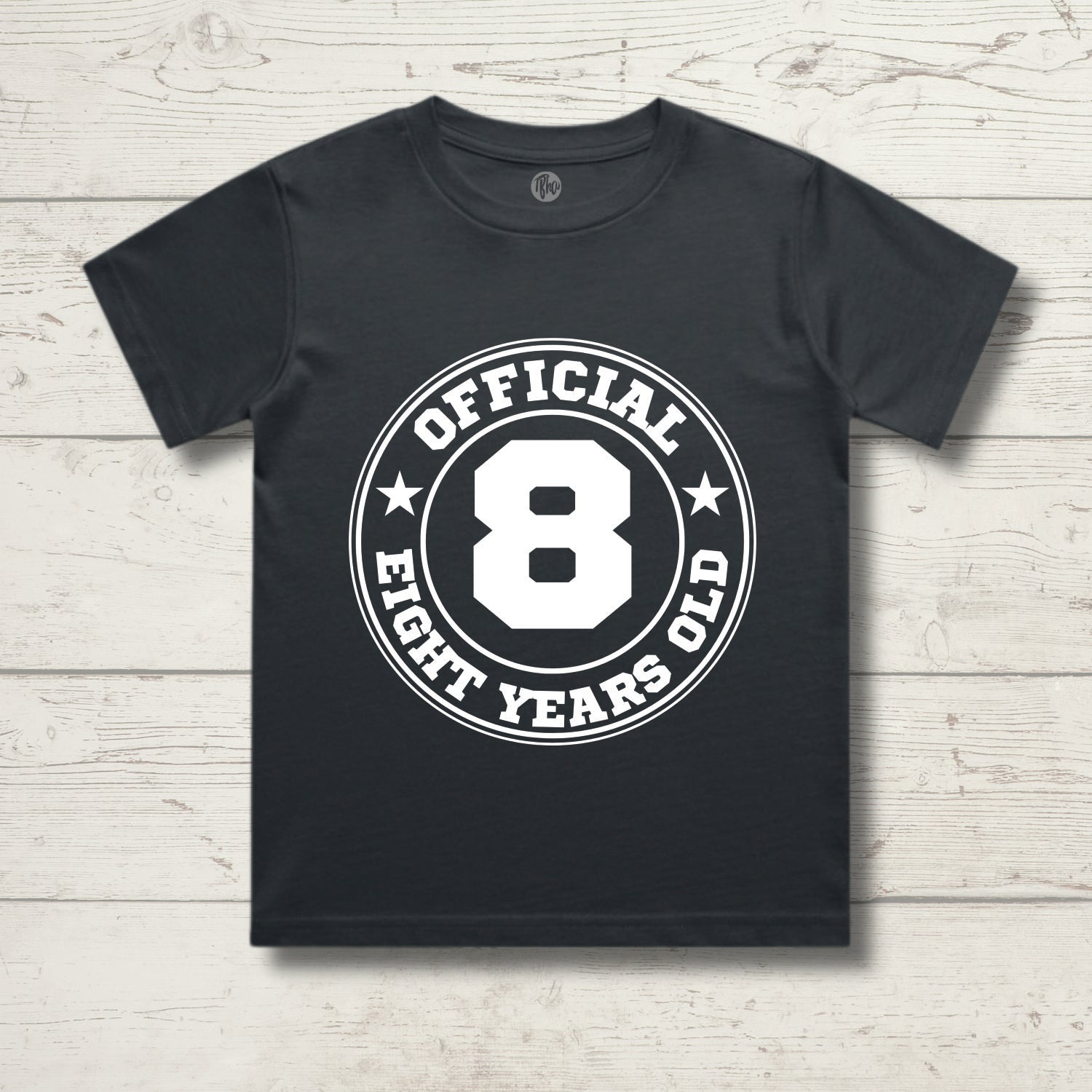 Celebrate your child's milestone with our Official Eight Year Old 8th Birthday T-Shirt—the perfect way to mark this special year. Personalize it with your child's name on the back for a one-of-a-kind keepsake they'll treasure. Ideal for 8th birthday party. Give them a shirt as unique as they are.