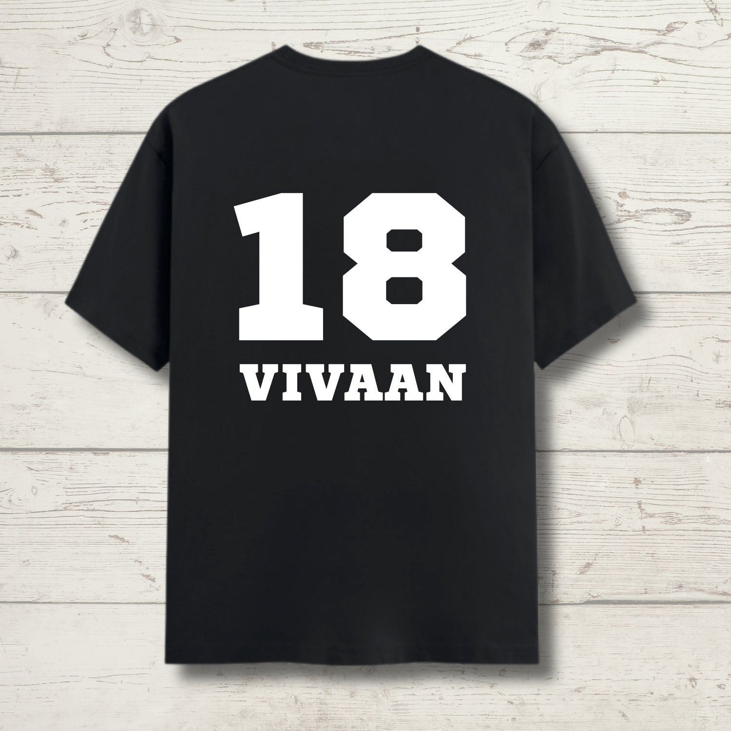 This premium birthday tee features a bold OFFICIAL EIGHTEEN YEARS OLD varsity-style design on the front and a fully personalized name at the back — just like a cool jersey!