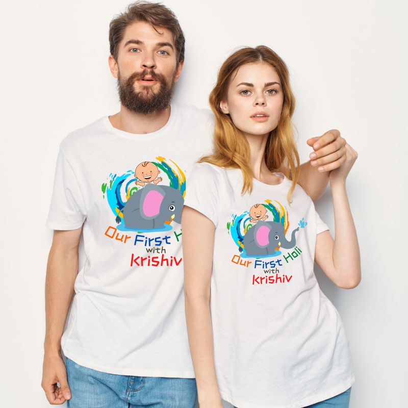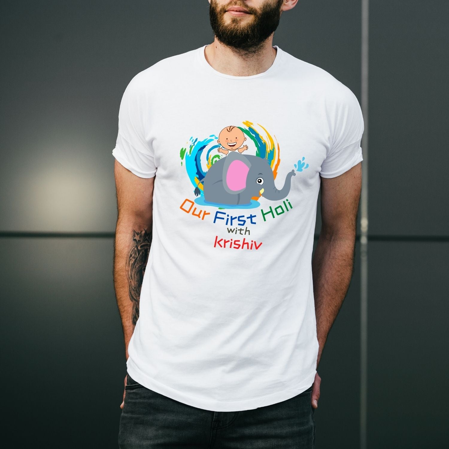 Celebrate the happiest festival of India in style with Our First Holi Customised T-Shirts! Uniquely designed for your entire family, these tees are perfect for making your first Holi together even more special. Plus, personalized customizing options mean each shirt is *as unique as you are!(!) Let the colors fly and the good vibes come in!