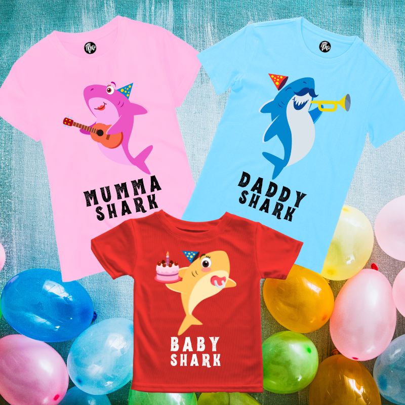 Get ready to make a splash with these Shark Theme Birthday Tees! Perfect for the whole family, these playful tees feature Daddy, Mumma, and Baby Sharks, bringing fun and unity to your celebration. Soft, comfortable, and eye-catching, they're ideal for creating memorable birthday moments with a fin-tastic twist. Dive into family fun and style!