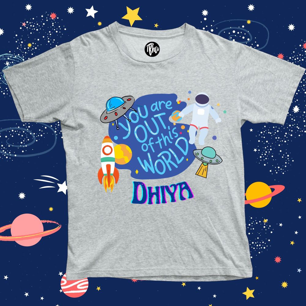 Send your little one to a galaxy far, far away with this "You are out of this World" space theme custom name T-shirt. It's a stellar way for them to explore new worlds, boldly go where no kid has gone before, and look cute and comfy while doing it! Blast off!
