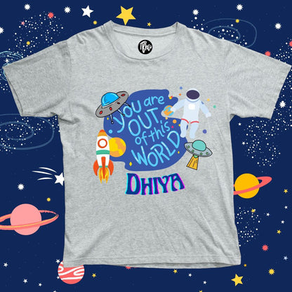 You are out of this World Space Theme Custom Name T-Shirt for Kids